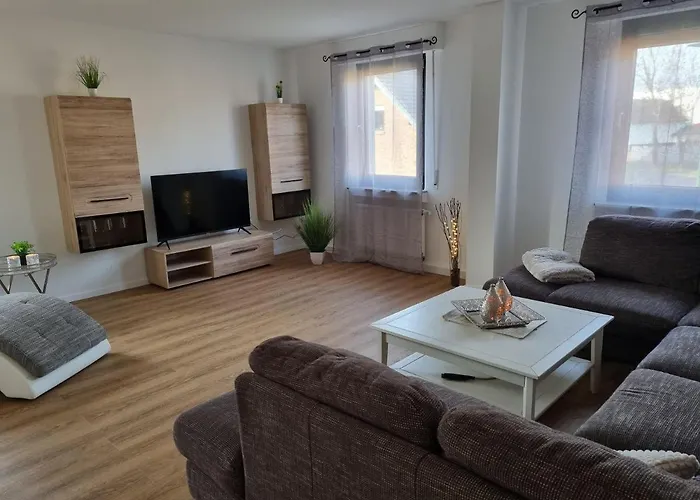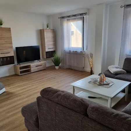 街路景色を望むFerienwohnung Irinaアパ-トの客室には,ソファ,コ-ヒ-/紅茶メ-カ- と衛星テレビがあります. 客室の一部はリラックスするテラスを含んでいます. バスル-ムは1室です.